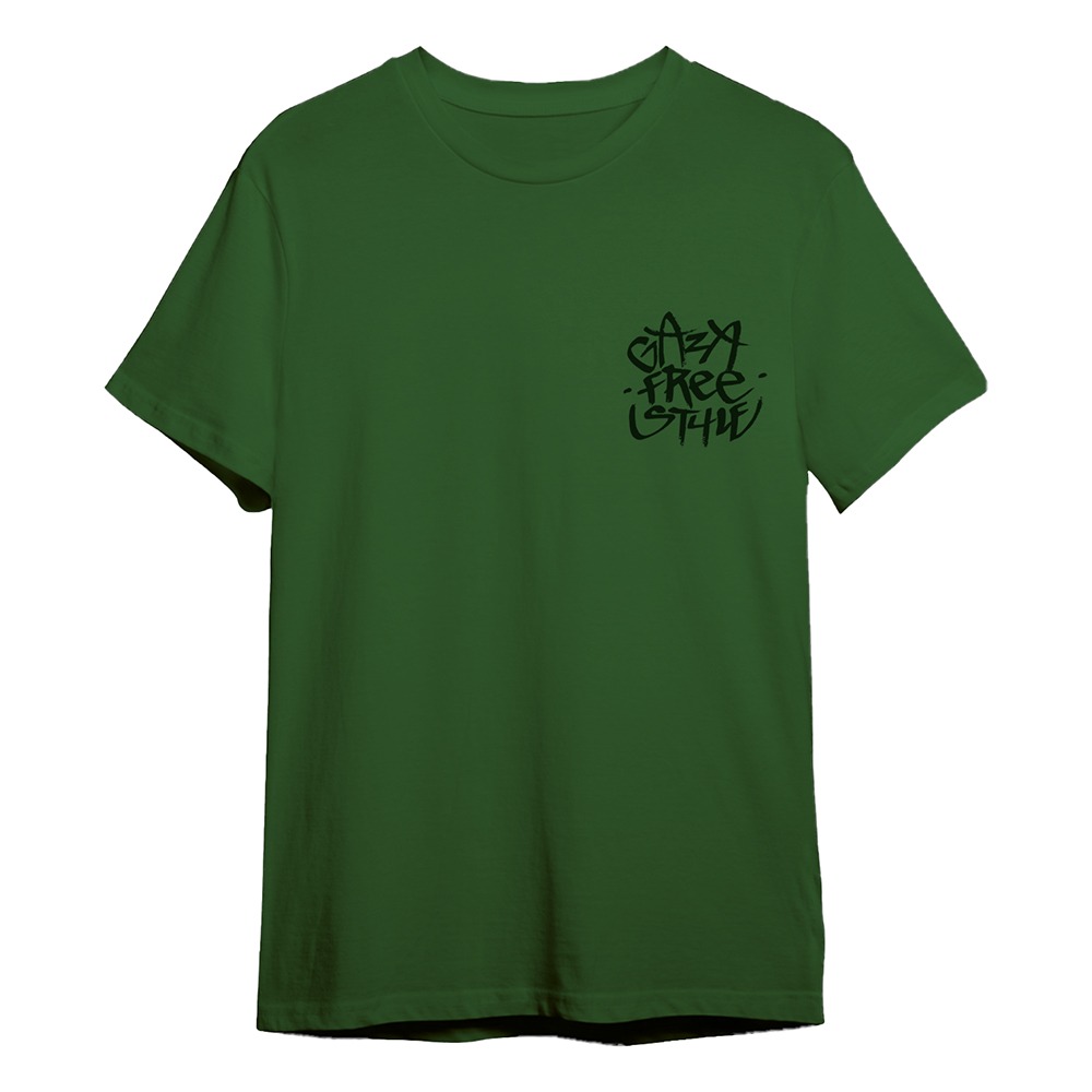 T-shirt verde con stampa serigrafica solo fronte nera
